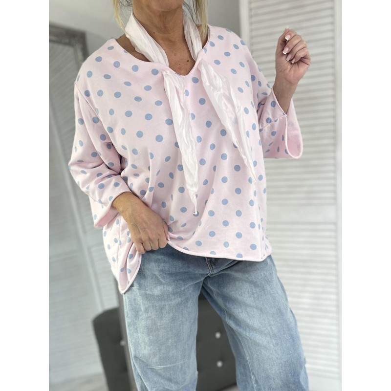 BLUZKA ITALY MUJEA GROSZKI PINK +SIZE