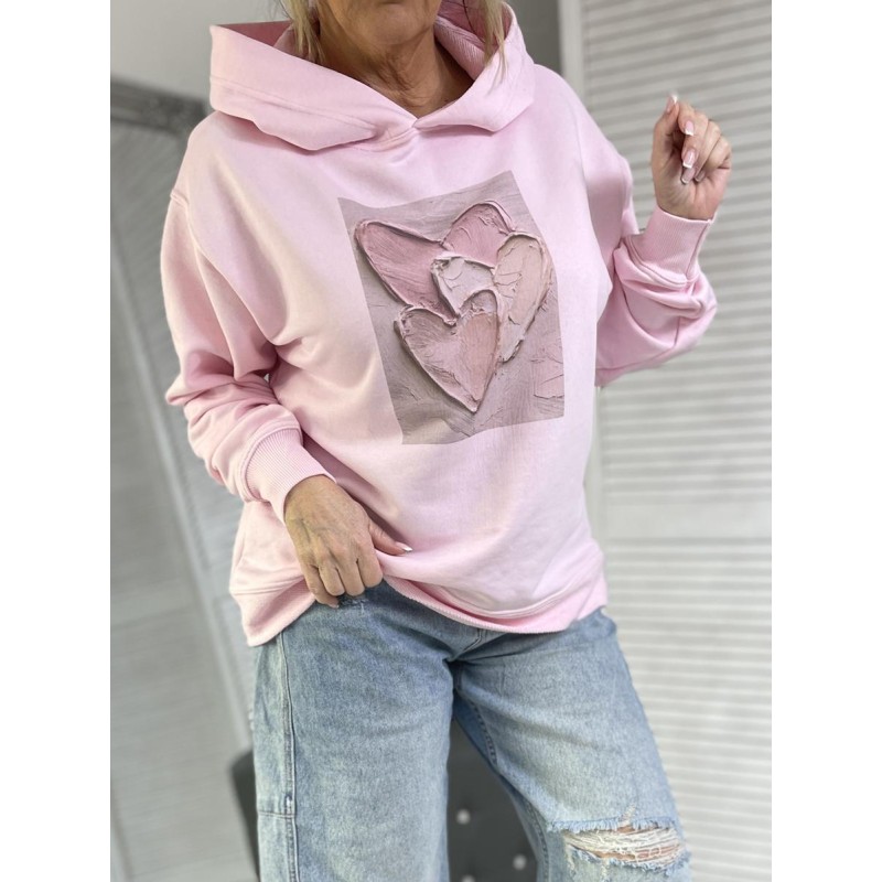BLUZA OVERSIZE HEART KAPTUR PINK