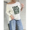 BLUZKA LASER GREEN LEAVES EKRU