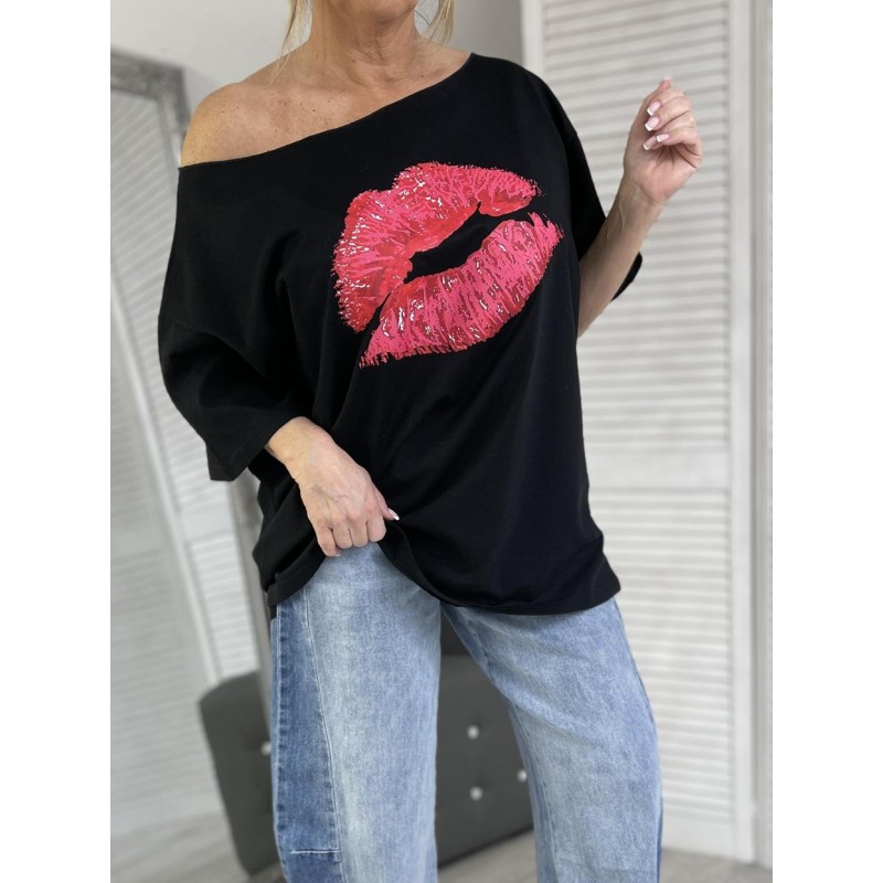 BLUZKA OVERSIZE KISS BLACK + SIZE